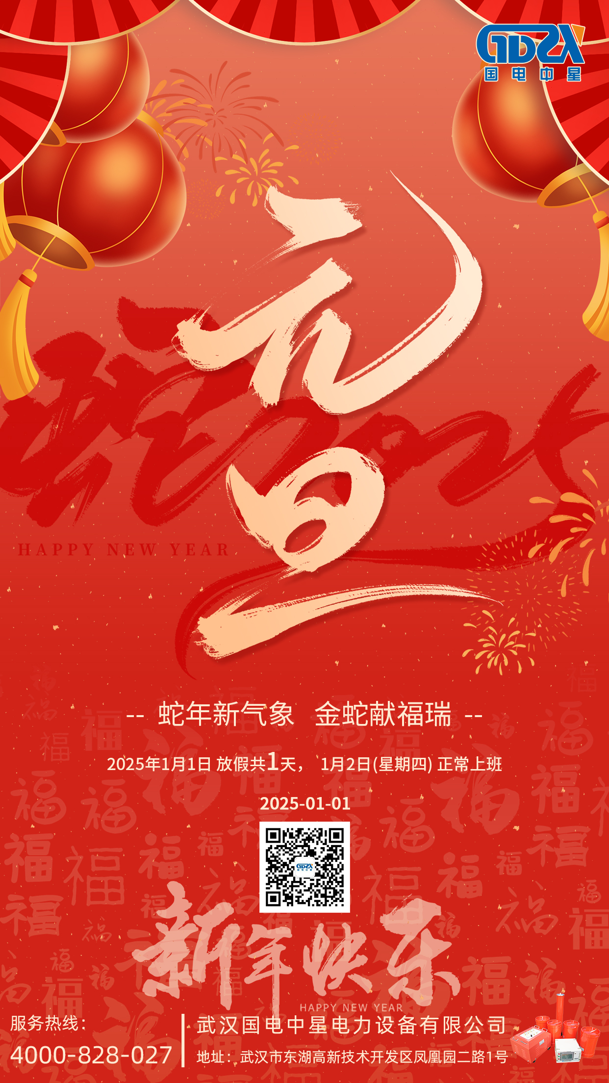 金蛇迎春|國電中星2025年春節(jié)放假通知2025年春節(jié)放假安排通知如下:2025 年1月22日(星期三)至2月4日(星期二)放假,共14天。2月5日(農(nóng)歷初八)正式上班。