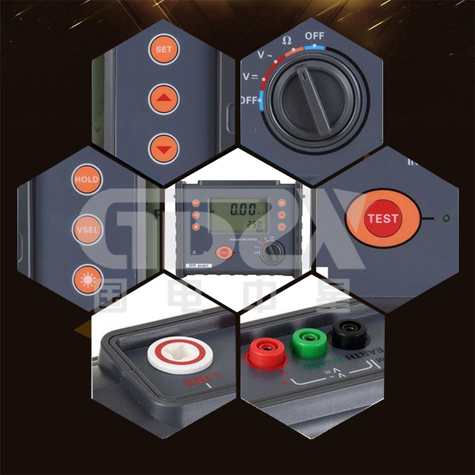 BY2677絕緣電阻測試儀又名兆歐表、高壓絕緣電阻測試儀,用于絕緣電阻的測試。本儀表具有LCD大屏幕灰白背光顯示、數(shù)據(jù)存儲、數(shù)據(jù)查閱、報警、自動關機等功能。同時還具備測量直流電壓交流電壓吸收比和極化指數(shù)功能。它適用于測量各種絕緣材料的電阻值及變壓器、電機、電纜及電器設備等的絕緣電阻。。