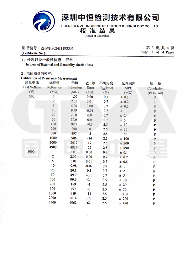 絕緣電阻量程(GΩ)